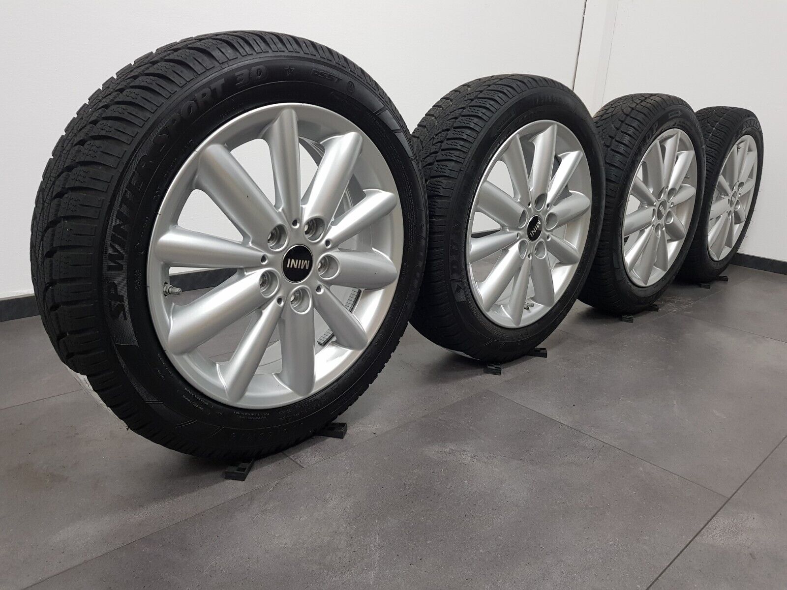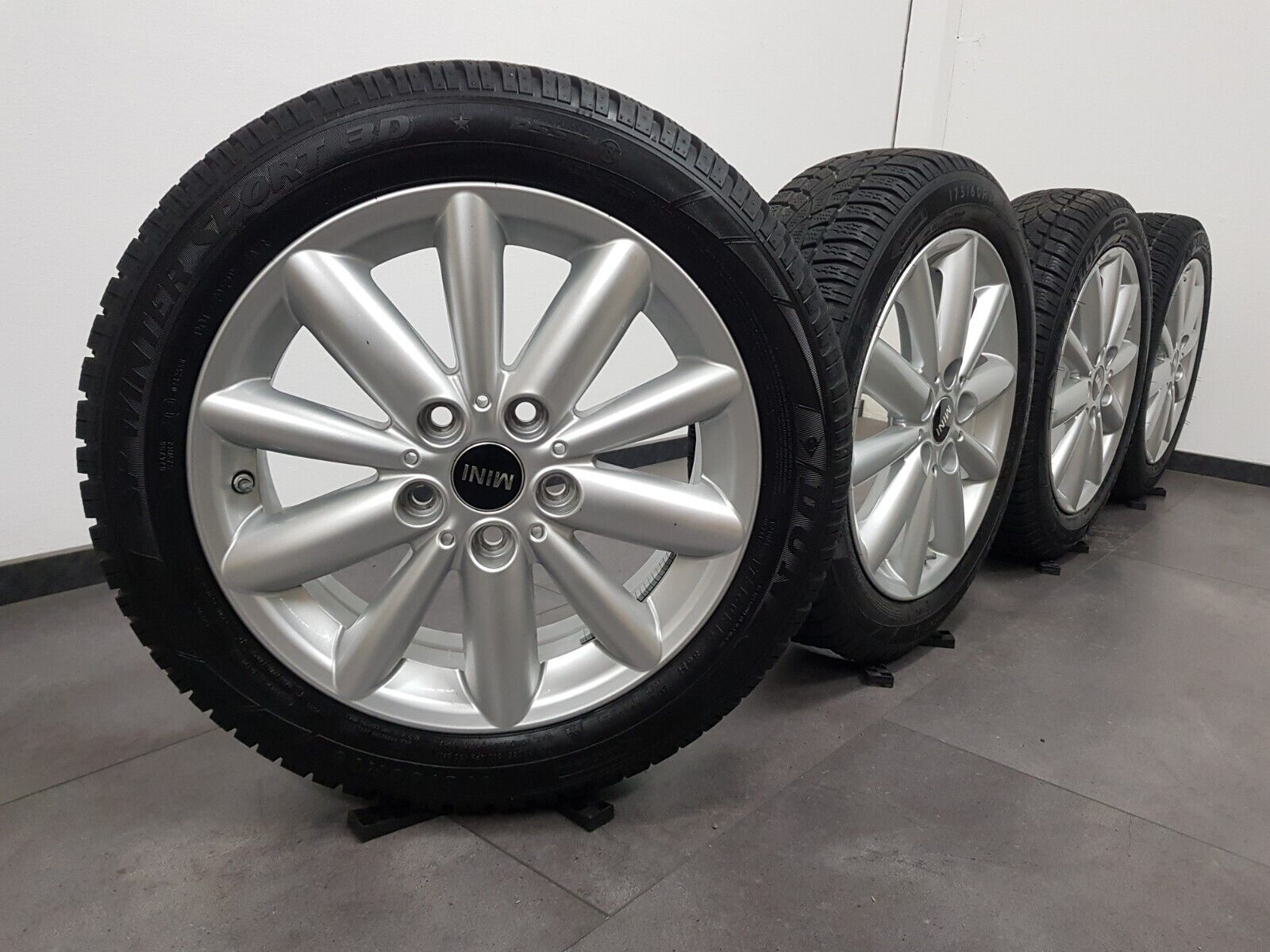 Mini Winterkomplettradsatz auf original Radial Spoke 508 Felgen in silber.